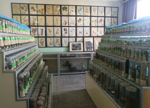 药学系中药标本室成立于上世纪六十年代,至今已有50多年的历史,是由黄克俊教授与药理教研室教学人员一同收集,整理和建立,凝聚了几代药学工作者的智慧和汗水。现中药标本室收藏有药用植物标本2000余种,药用动物标本30余种,药用矿物标本40余种,分为中药材标本、饮片标本、中药浸制标本、蜡叶标本等多个种类,其中收藏有名贵药材冬虫夏草、人参、灵芝、三七、鹿茸、虎骨、乌蛇、鳖甲等,山西道地药材党参、连翘、黄芪等。