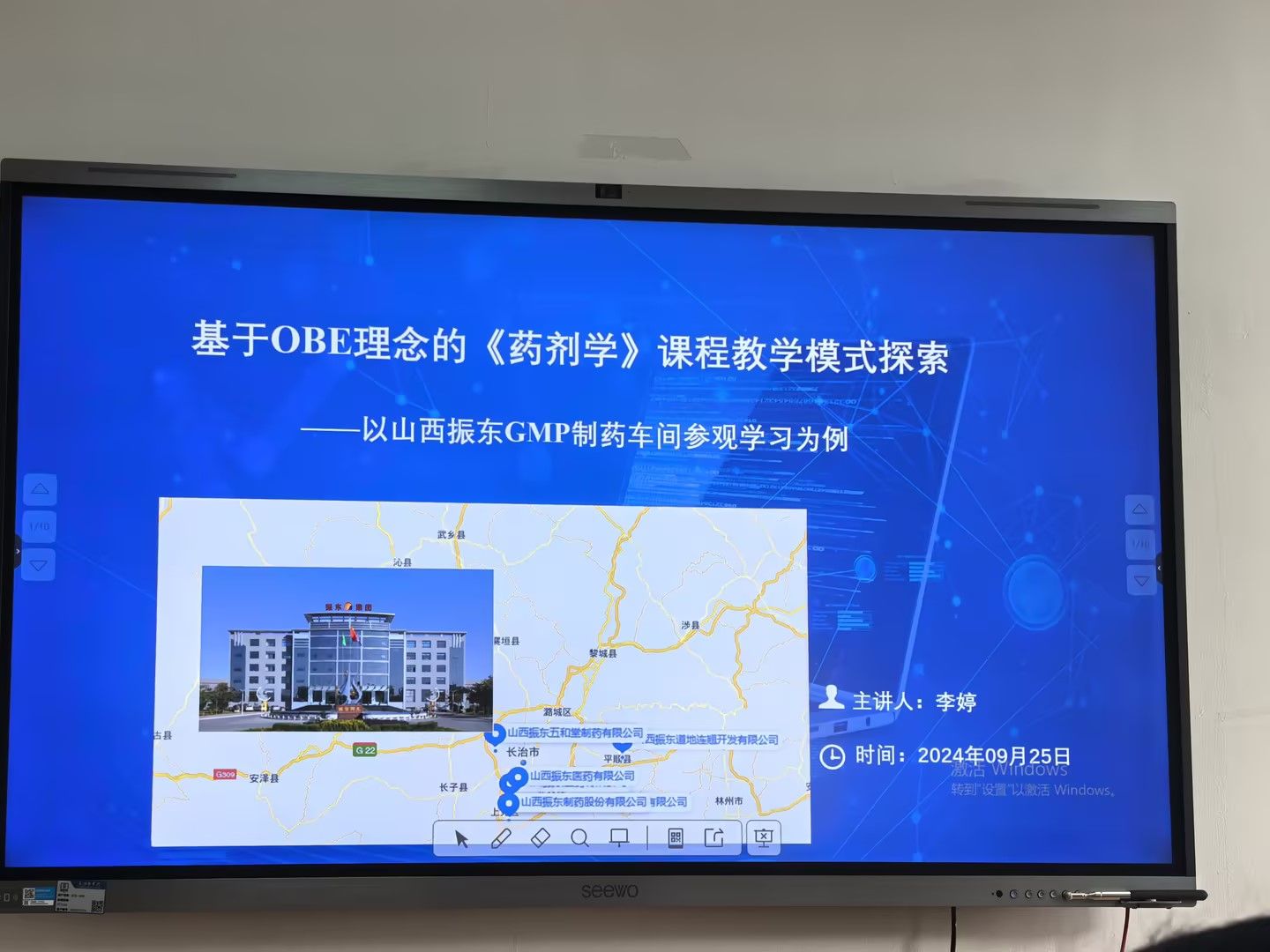 学术交流环节,beat365vip官网登录入口药剂学教研室李婷和药物化学教研室郭文阁分别做了题为《基于OBE理念的药剂学课程教学模式探索—以山西振东GMP制药车间参观学习为例》和《基于振东制药学习的教学科研反思》的报告,分享了他们在振东制药股份有限公司交流学习的收获和体会。