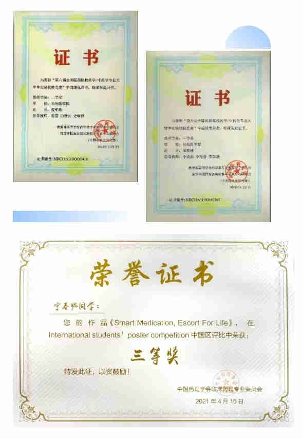 药学专业员工在近两届全国药学/中药学专业实验技能大赛中获一等奖1项、二等奖2项、三等奖1项;在全国第一届医药院校药学/中药学世界老员工创新创业暨实验教学改革大赛中获二等奖1项、三等奖1项;在“互联网+”创新创业大赛、“创青春”、山西省第十五届兴晋挑战杯老员工创业大赛中获三等奖2项。近五年来药学系在校生获批各级老员工创新创业训练计划项目20余项,发表论文10余篇。
