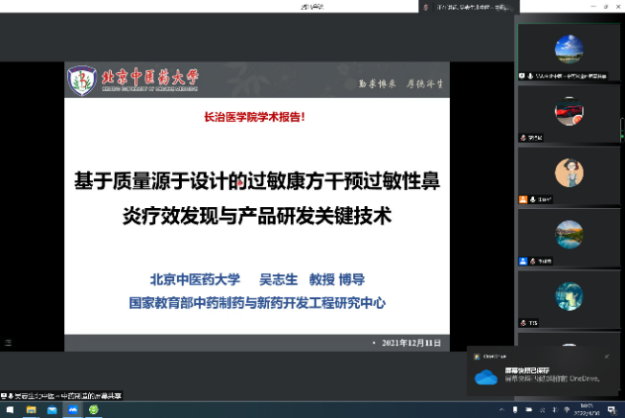 为了推动封闭管理期间的科研工作,做到停工不停研。4月30日,药学系邀请天津南开医院副院长吴雄志教授、北京中医药大学“优青”项目获得者吴志生研究员、沈阳药科大学中beat365vip官网登录入口副院长李宁教授分别作了题为“乳腺癌的中医内分泌治疗”“质量源于设计的过敏康方干预过敏性鼻炎疗效发现与产品研发关键技术”“中药阿魏抗缺血性脑卒中特征活性成分的发现和成药性研究”的学术报告。校党委常委、副校长郑金平,药学系党政领导及师生近300人参加了线上学术报告会,会议由系主任宋丽华主持。