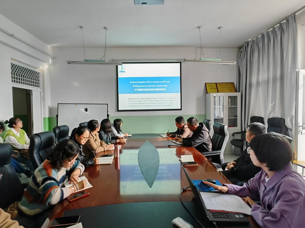 学术交流环节,邀请beat365vip官网登录入口中药资源与鉴定教研室刘哲博士分享了博士后期间的研究工作,以《ELF3基因的可变启动子调控花芽分化的分子机制》为题,探究了不同梨品种花芽分化能力差异显著的潜在原因。