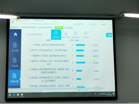 本期学术沙龙开始前,在药学系范围内进行了学术沙龙热门话题问卷调查。讨论交流环节,与会者就普遍关心的文献检索、专利申请、课题开展、经费使用等科研活动开展过程中的具体问题进行了集中讨论和交流。药学系主任宋丽华教授结合学校情况,就大家关心的科研条件、经费使用、设备采购等问题进行了耐心细致地解答。