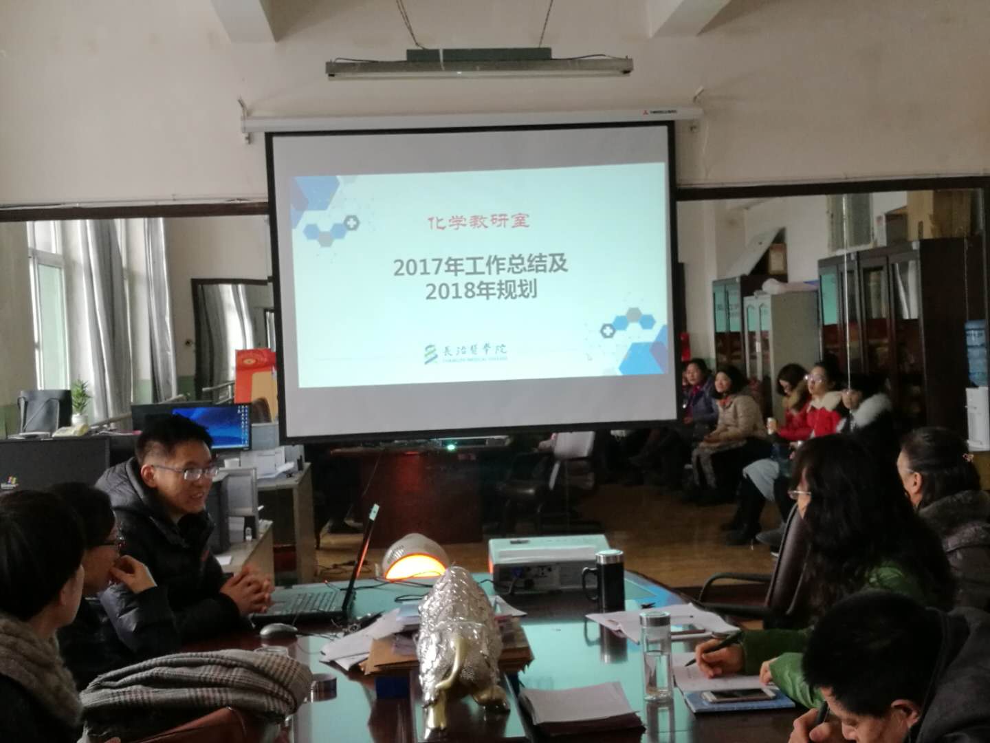 会上,药学系所属6个教研室、2个实验室以及综合办、教学秘书、分团委分别以PPT形式进行了总结汇报。汇报中,大家对一年来在教学、科研、团队建设、实验室建设、员工管理等方面的工作完成情况、取得的成绩、存在的问题进行了认真客观的总结,展现了各自的亮点,并以问题为导向提出了一些极具启发性的思路。