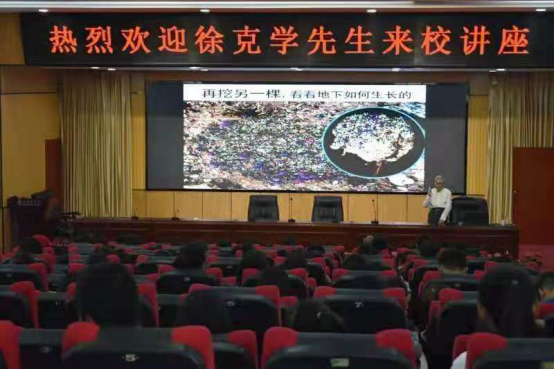 已是耄耋之年的徐克学老先生,在历时4个小时的讲座过程中,声音洪亮,全程站着讲授,其对植物学浓厚的兴趣、广博的学识、忘我的敬业精神以及深深的家国情怀感染了所有在座师生,堪称所有教师、员工的楷模。整个报告厅座无虚席,很多同学站着听完报告。