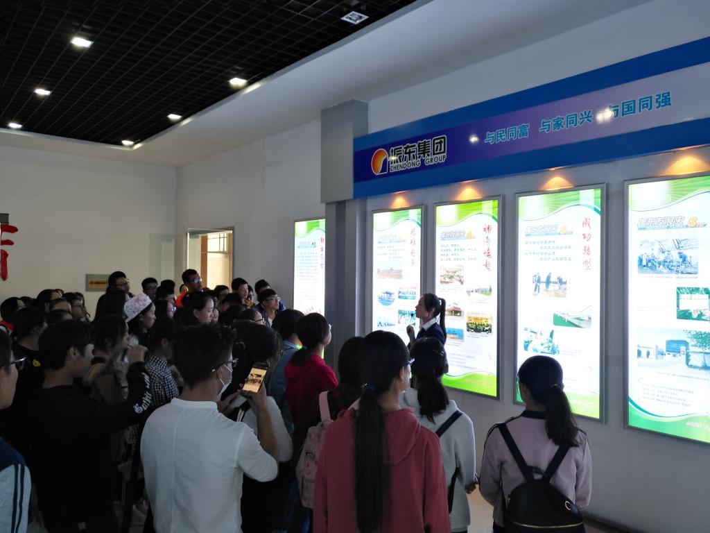 首先,在振东集团相关负责人的带领下,参观了振东集团的展览馆,在老师的讲解中,了解到该集团发展前身和发展历史,及其创立、转型和发展等,并介绍了振东集团生产的相关产品及“振东精神”、“振东人”,管理理念等多方面的内容。从振东的发展贯穿17级新生的求学之路,人生之路;以振东艰苦卓越的发展、创新来影响新生的心志;以振东逐渐完善的体系来启发新生自我的完善。